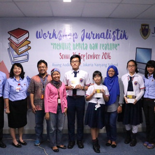 “Workshop jurnalistik ini seru dan membuat kita lebih giat untuk menulis artikel terutama di blog jurnalistik JNY,” ungkap Nadya, anggota klub jurnalistik Jakarta Nanyang School (JNY). Luapan antusias tersebut berlangsung selama kegiatan Workshop Jurnalistik yang berlangsung pada tanggal 26 September 2016. Bertempat di Ruang Audio Visual JNY, kegiatan ini diikuti oleh seluruh anggota Klub Jurnalistik sebanyak 20 siswa, dan 22 siswa lain dari Junior College yang tertarik. Acara yang digagas oleh Klub Jurnalistik Departemen Bahasa Indonesia JNY ini, mengundang Imam Prihadiyoko (wartawan senior Kompas), Retmawati (Penyelaras Bahasa Kompas), dan Nanik Dwiastuti (Penyelaras Bahasa Kompas) sebagai pembicara.