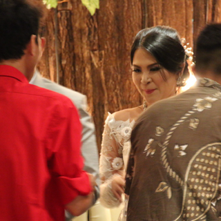 Resepsi dilaksanakan pada hari esoknya, tanggal 2 Juli, 2017. Lokasi yang telah dipilih adalah sebuah restoran bernama Wyl’s Kitchen yang terletak di Veranda Hotel, Jakarta Selatan. Tempat tersebut memiliki homy vibe dan semi-terbuka, di mana terdapat sebuah kolam renang yang menghadap pemandangan Kota Jakarta pada saat malam hari. Setelah kami sampai, kami disambut oleh alunan musik yang tengah dimainkan oleh sebuah band. Tak lama kemudian, para tamu mulai berdatangan dan acara resepsi pernikahan pun siap dimulai.